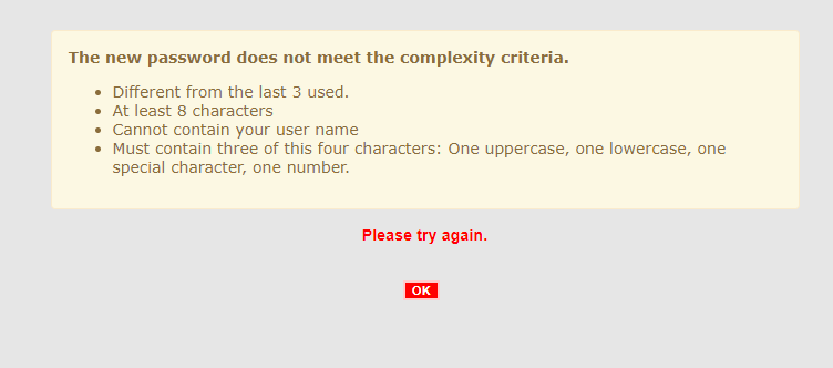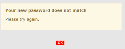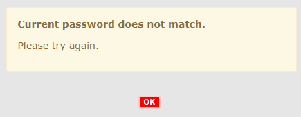 If we do not meet the necessary requirements, the passwords do not match, or our current password is invalid, the system provides the following notifications: